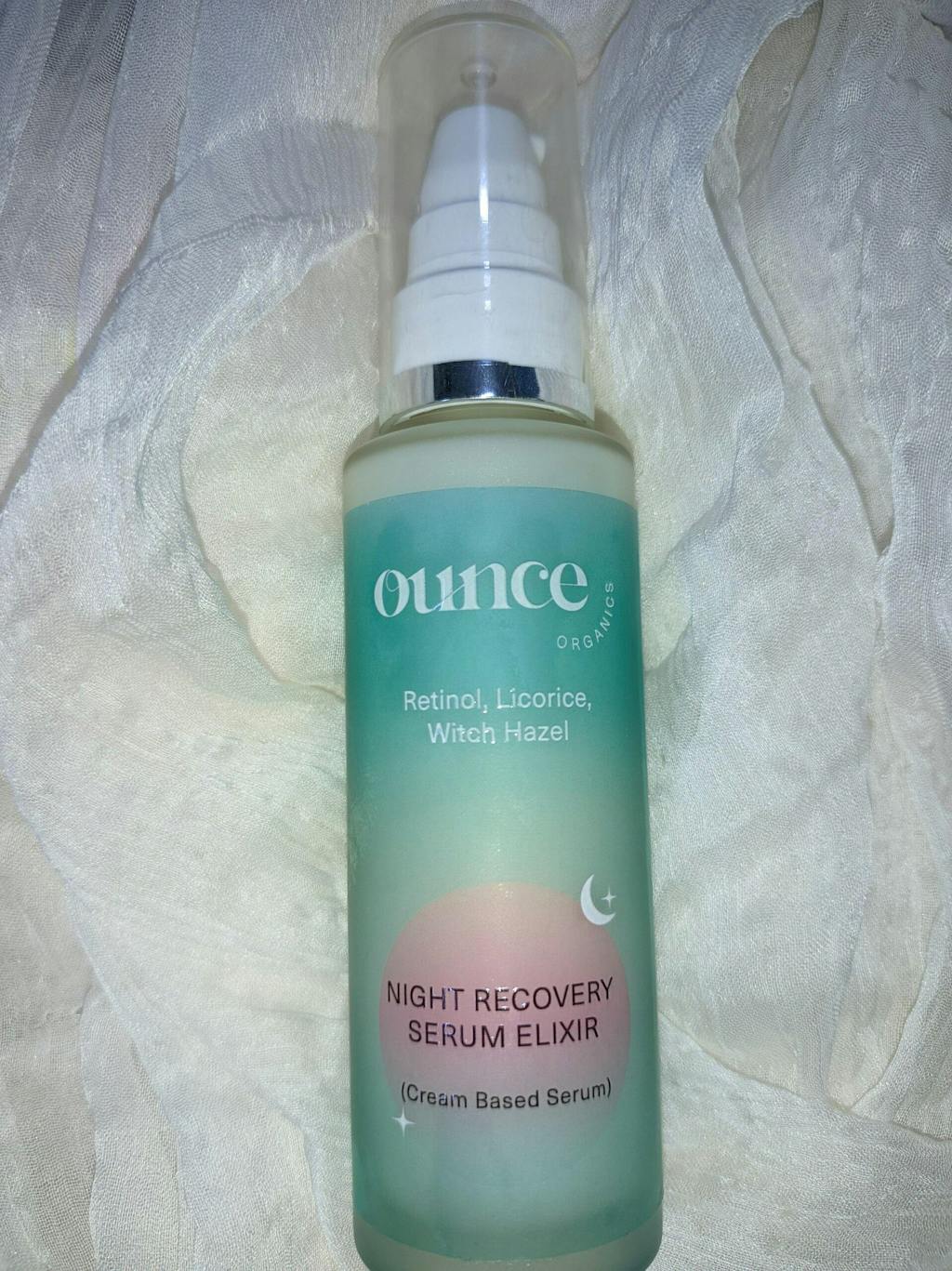 Unveil radiant, youthful skin with Ounce Organics Night Recovery Serum Elixir. This indulgent, cream-based serum is thoughtfully crafted with Retinol, Licorice, Witch Hazel, Rice Water, Tea Tree, and Neem Extracts to deeply nourish, repair, and renew your skin while you sleep. Overnight, it works to fade dark spots, refine uneven texture, and calm imperfections, helping to restore balance and vitality. With regular use, your skin wakes up visibly smoother, refreshed, and glowing with a luminous morning radiance.